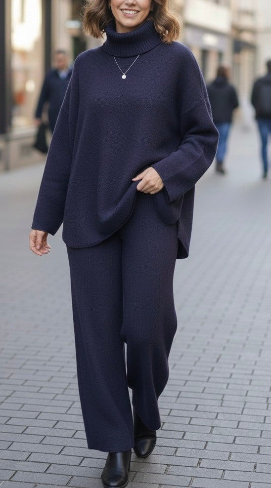 Niente batte la libertà di un set in maglia dal taglio rilassato. Caldo, morbido, e incredibilmente versatile: il tuo nuovo alleato per le giornate più fredde .Basta un accessorio minimal per completare il look.